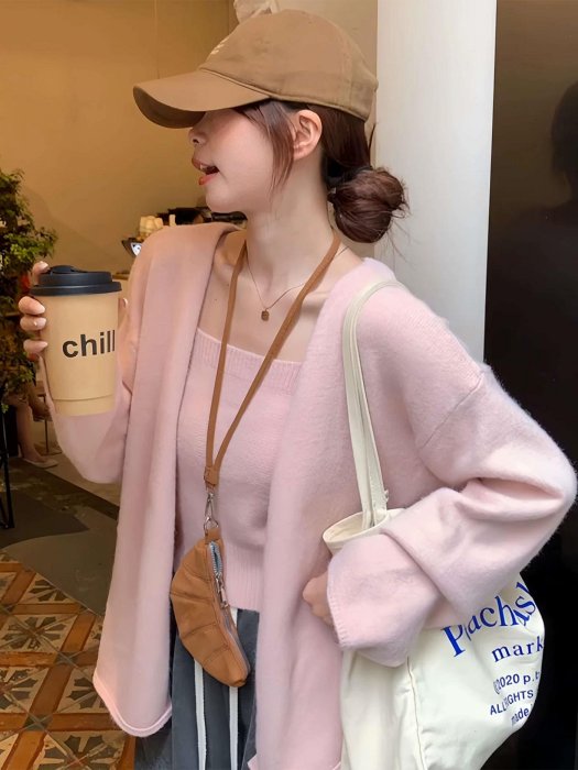 優寶購物《ubao.Tw》特貨品商城,黑貓宅配,取貨付款,秋季新款藍色長袖針織開襟外套兩件組藍色粉色 | Yahoo拍賣
