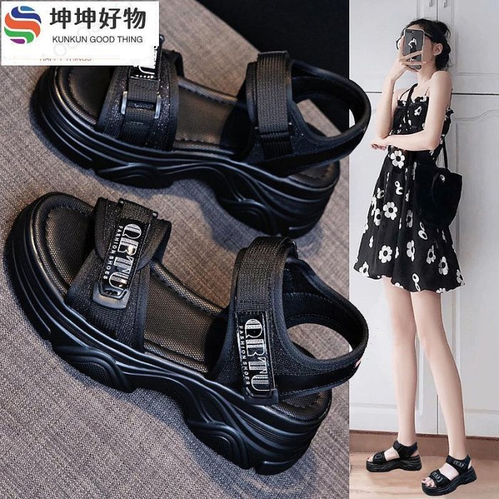 優寶購物《ubao.Tw》特貨品商城,黑貓宅配,取貨付款,運動涼鞋女2023年新款夏季百搭松糕厚底女鞋軟底沙灘休閑鞋子~坤坤好物~ | Yahoo拍賣