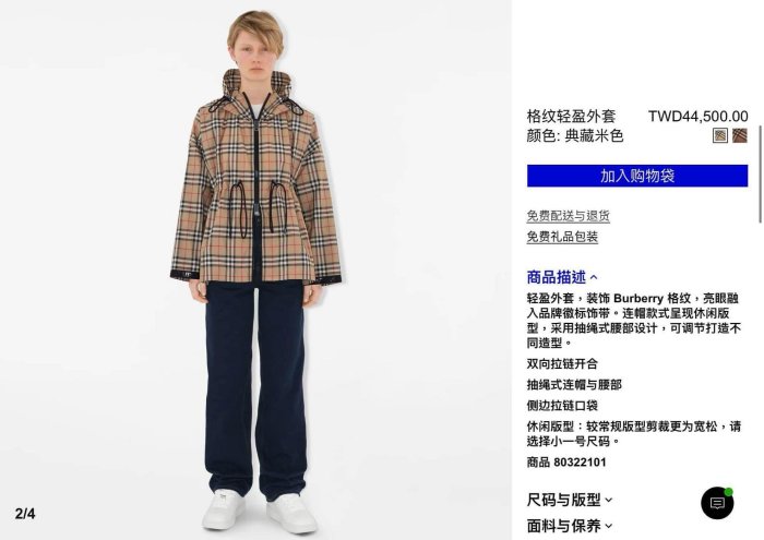 優寶購物《ubao.Tw》特貨品商城,黑貓宅配,取貨付款,英國Burberry 格紋輕盈連帽外套UK2 | Yahoo拍賣