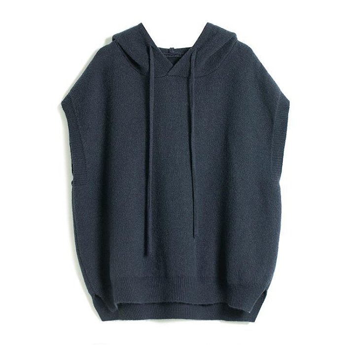 優寶購物《ubao.Tw》特貨品商城,黑貓宅配,取貨付款,IM 四色好品PBT綿密軟糯簡約超大OVERSIZE慵懶知性坎肩抽繩連帽無袖毛衣背心/落肩小開叉蝙蝠魟形大版針織馬甲 | Yahoo拍賣