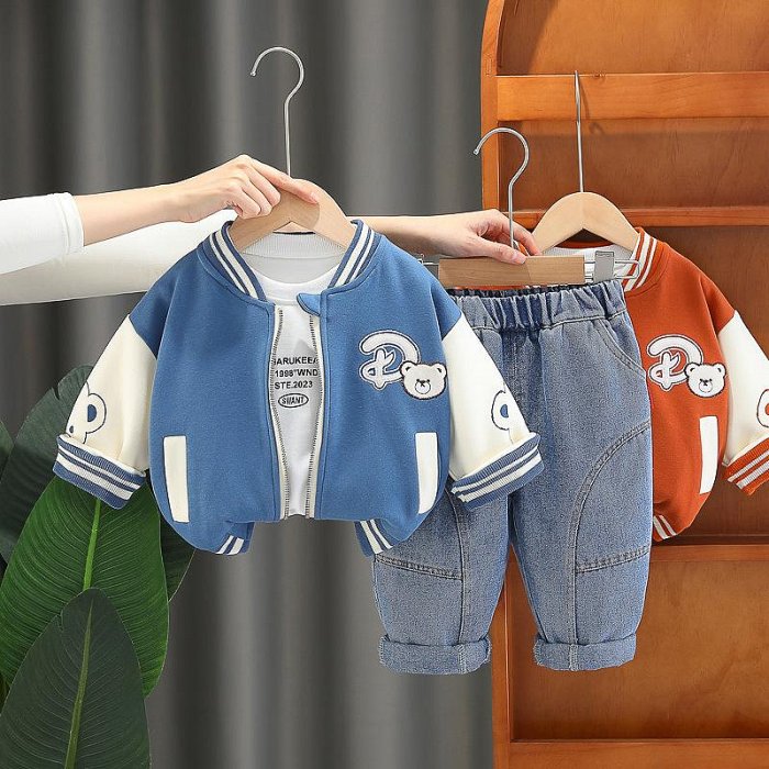 優寶購物《ubao.Tw》特貨品商城,黑貓宅配,取貨付款,男童春裝套裝2025春秋新款小童卡通小熊棒球服外套洋氣兒童三件套 | Yahoo拍賣