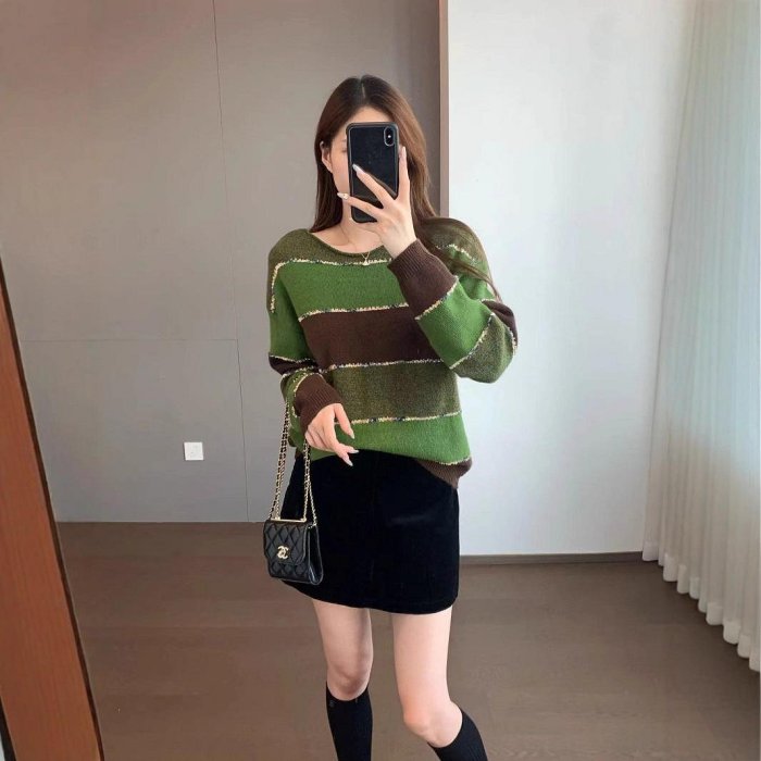 優寶購物《ubao.Tw》特貨品商城,黑貓宅配,取貨付款,慵懶顯白羊毛混紡軟糯親膚寬鬆版復古撞色彩條圓領毛衣秋╭☆ Queen☆like* 嚴選女裝 #51456 | Yahoo拍賣
