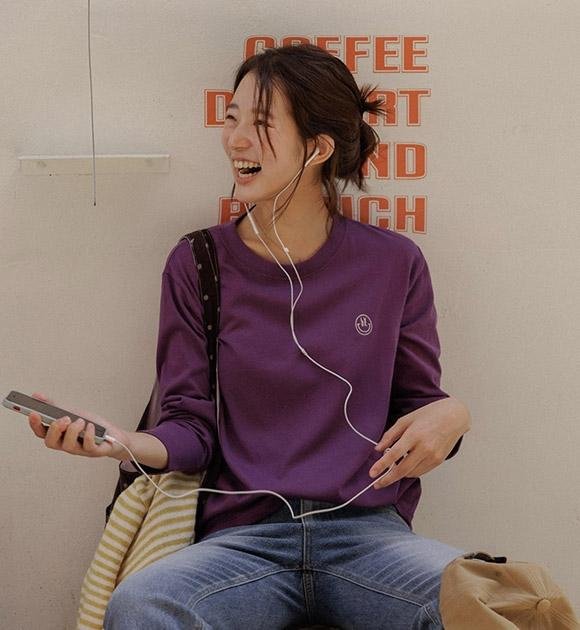 優寶購物《ubao.Tw》特貨品商城,黑貓宅配,取貨付款,快閃優惠價299元 Bellee 正韓 刺繡笑臉輕盈棉質彈性長袖上衣 (5色) 【1002-1】 | Yahoo拍賣