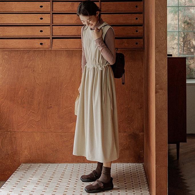 優寶購物《ubao.Tw》特貨品商城,黑貓宅配,取貨付款,Bellee 正韓 側邊腰身綁帶燈芯絨背心裙 無袖洋裝 (3色)【1002-6】 | Yahoo拍賣