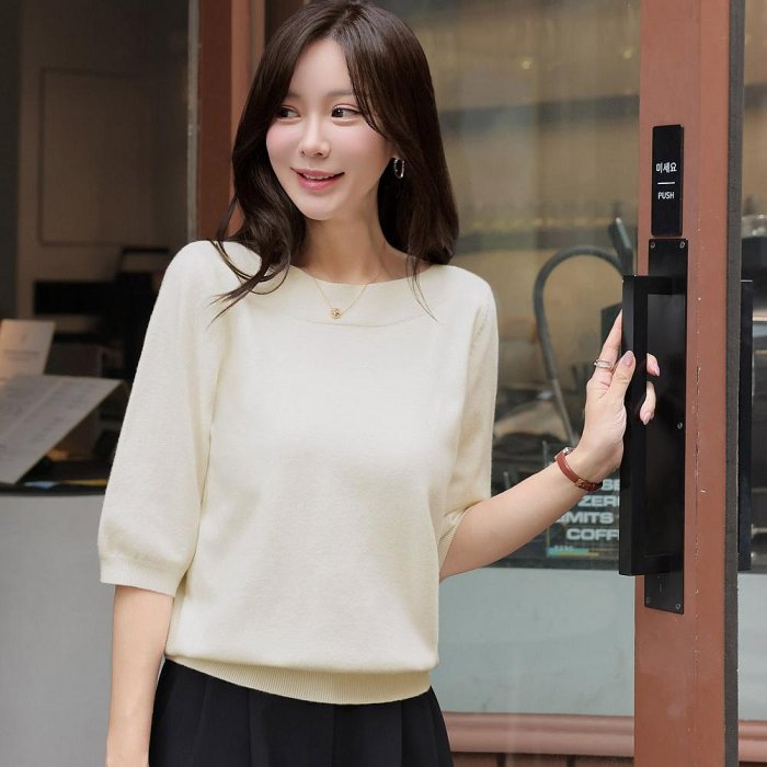 優寶購物《ubao.Tw》特貨品商城,黑貓宅配,取貨付款,Bellee 正韓 打造修身 寬鬆版型柔軟舒適船領七分袖針織上衣 (5色) 【1002-26】 | Yahoo拍賣