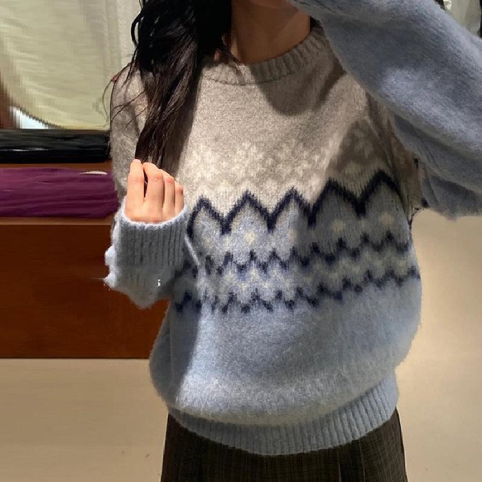 優寶購物《ubao.Tw》特貨品商城,黑貓宅配,取貨付款,2025秋季新款韓國東大門復古高級感重工提花圓領羊毛針織衫女毛衣 | Yahoo拍賣