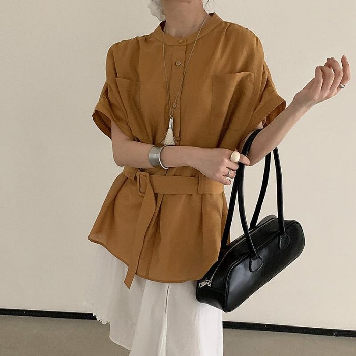 優寶購物《ubao.Tw》特貨品商城,黑貓宅配,取貨付款,2025韓國東大門夏季新款純色簡約小眾氣質寬松顯瘦圓領短袖襯衫女 | Yahoo拍賣