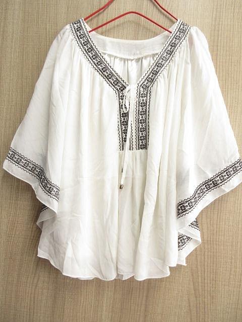 優寶購物《ubao.Tw》特貨品商城,黑貓宅配,取貨付款,4778~ INGNI 典雅黑白繡花V領蝴蝶結綁帶設計寬版蝴蝶袖美衣~M | Yahoo拍賣