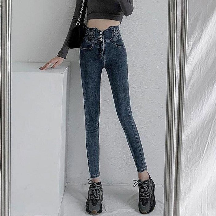 優寶購物《ubao.Tw》特貨品商城,黑貓宅配,取貨付款,高腰牛仔褲女長褲子緊身褲排扣超高腰緊身彈力牛仔褲女藍灰時尚設計收腹修身九分鉛筆小腳褲女性褲子流行女裝休閒服飾~EB17901~愛購網~全館699免運 | Yahoo拍賣