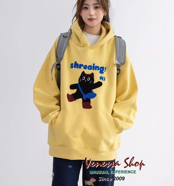 優寶購物《ubao.Tw》特貨品商城,黑貓宅配,取貨付款,VENESSA~ 輕潮出街 CHT 毛巾繡貓咪 寬鬆慵懶 女の甜酷減齡連帽衛衣T恤 鬆弛上衣 3色 (G1761) | Yahoo拍賣