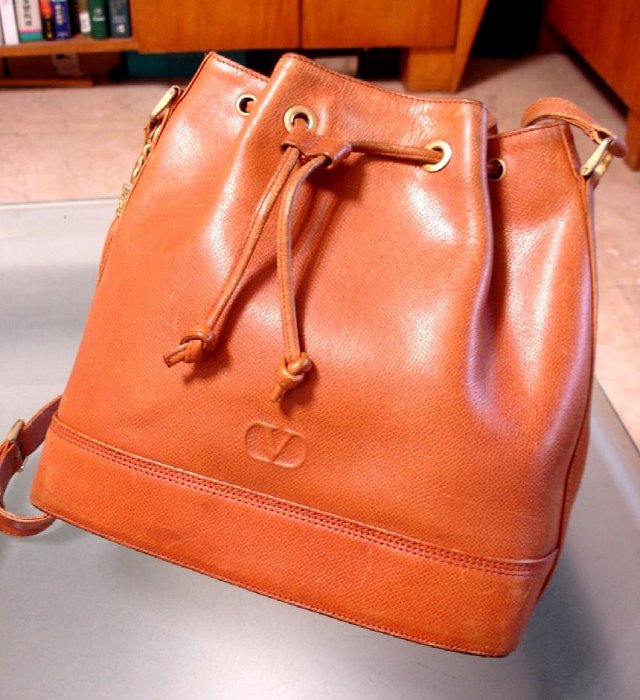 優寶購物《ubao.Tw》特貨品商城,黑貓宅配,取貨付款,品相佳 義大利Valentino Garavani 女性 V Logo油亮純牛皮+後拉鍊袋 束口式 時尚斜背側背桶包 (特價真品) 30cm | Yahoo拍賣