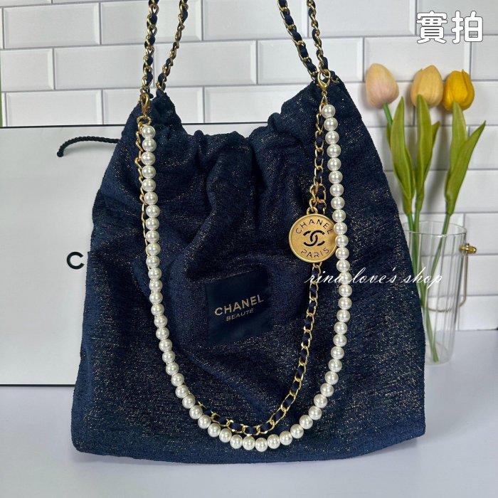 優寶購物《ubao.Tw》特貨品商城,黑貓宅配,取貨付款,小香VIP托特包改造鏈條包|珍珠鏈22Bag風 大容量手提肩背兩用|深藍毛呢附內膽 | Yahoo拍賣