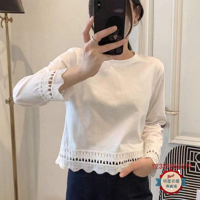 優寶購物《ubao.Tw》特貨品商城,黑貓宅配,取貨付款,明星衣櫃=極簡風正肩t恤上衣女士早春秋款洋氣減齡拼接蕾絲鏤空內搭打底衫 | Yahoo拍賣