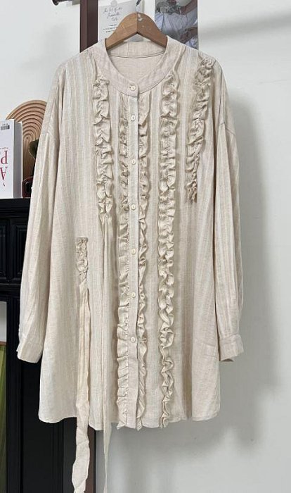 優寶購物《ubao.Tw》特貨品商城,黑貓宅配,取貨付款,女人衣櫥㊕初秋裝小資淑女典雅氣質基本款好搭 麻黃色垮肩長袖壓紋 胸前對稱花邊中長上衣襯衫 大尺碼超大胸134.C997♥ | Yahoo拍賣
