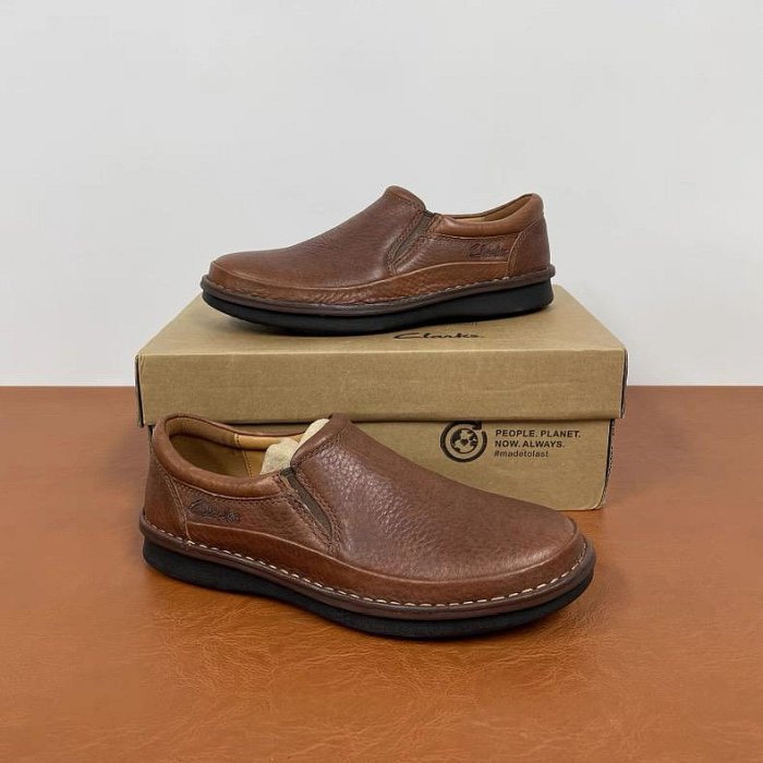 優寶購物《ubao.Tw》特貨品商城,黑貓宅配,取貨付款,正品新品Clarks其樂男鞋復古擦色棕色商務休閑皮鞋牛皮壹腳蹬樂福鞋 | Yahoo拍賣