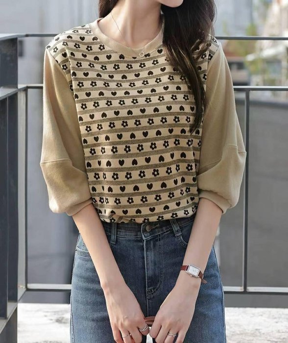 優寶購物《ubao.Tw》特貨品商城,黑貓宅配,取貨付款,正韓 圓領小花朵愛心可愛南瓜袖氣質上衣 五分袖 K1087 2486 | Yahoo拍賣