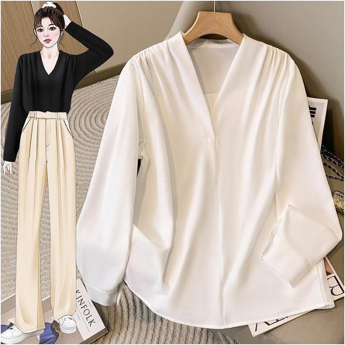 優寶購物《ubao.Tw》特貨品商城,黑貓宅配,取貨付款,✿ 吉米花 ✿ M-066636 大碼氣質V領長袖襯衣 ( 2色 M-4XL ) 全碼 | Yahoo拍賣