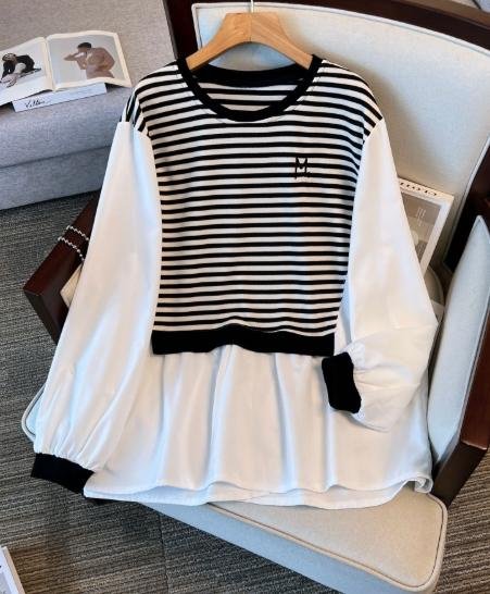 優寶購物《ubao.Tw》特貨品商城,黑貓宅配,取貨付款,大尺碼假兩件寬鬆上衣橫條撞色寬鬆襯衫~5XL-8XL BB | Yahoo拍賣