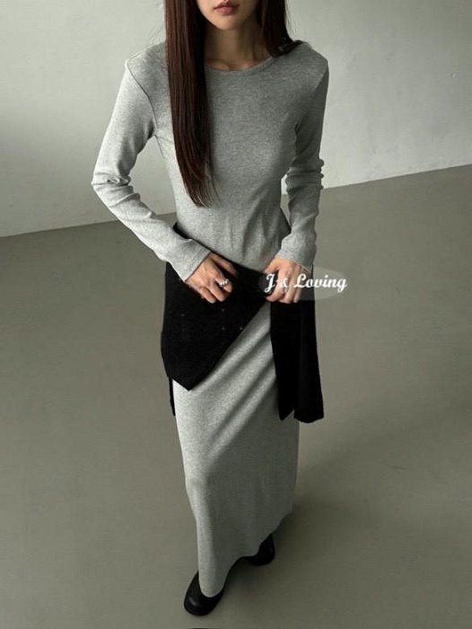 優寶購物《ubao.Tw》特貨品商城,黑貓宅配,取貨付款,J&L 25FW 10月 新 正韓 針織 大U領 合身 長洋裝 超長 打底 單穿 長洋 麻灰 / 黑 F 預購 | Yahoo拍賣