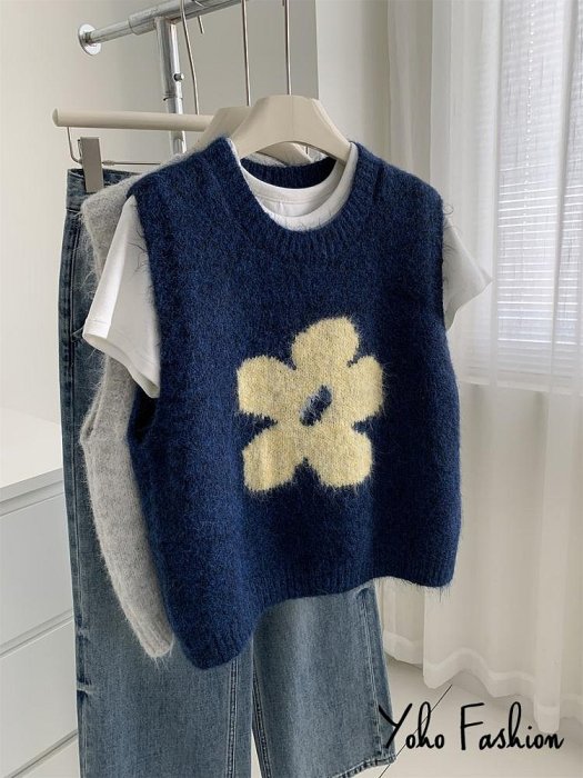 優寶購物《ubao.Tw》特貨品商城,黑貓宅配,取貨付款,11/7-13特價350YOHO 毛衣背心 實拍秋冬曡穿柔軟親膚花朵針織毛衣背心馬甲 (DXQ25804) | Yahoo拍賣