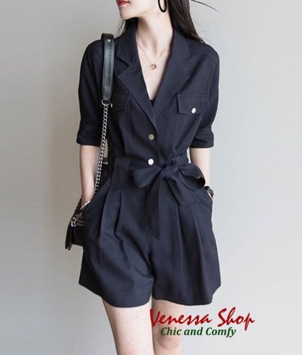 優寶購物《ubao.Tw》特貨品商城,黑貓宅配,取貨付款,小V私家~ MUSSY 新款 絲滑質感 俐落有氣場 上身超舒適 西裝小駁領 蝴蝶結綁帶 女の連身褲 短褲 (K825) | Yahoo拍賣