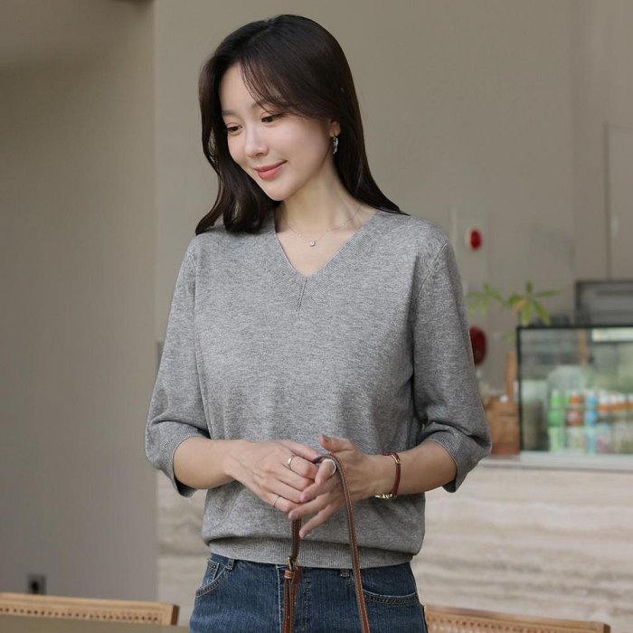 優寶購物《ubao.Tw》特貨品商城,黑貓宅配,取貨付款,Bellee 正韓 更柔軟! 寬V領七分袖針織上衣 (6色) 【1013-34】 | Yahoo拍賣