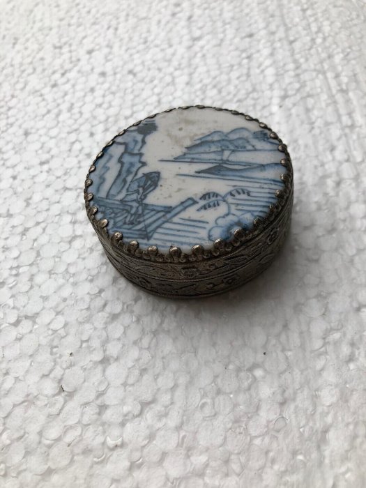 優寶購物《ubao.Tw》特貨品商城,黑貓宅配,取貨付款,嚴選歐陸回流古董銀盒,古代女子化妝珍品,重98克,青花瓷面雕工精緻,老翁垂釣圖人物生動,附內鑲小圓鏡,直徑5.5公分,高度2公分,品相極佳,適合收藏與把 | Yahoo拍賣