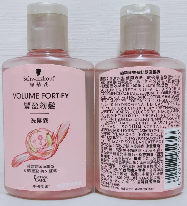 優寶購物《ubao.Tw》特貨品商城,黑貓宅配,取貨付款,全新 Schwarzkopf 施華蔻 豐盈韌髮洗髮露 60ml | Yahoo拍賣