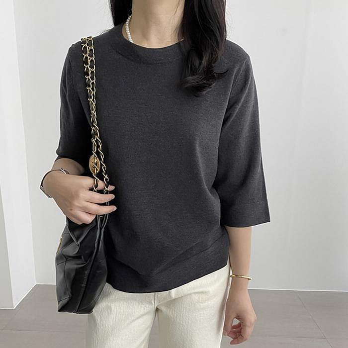 優寶購物《ubao.Tw》特貨品商城,黑貓宅配,取貨付款,bibi 正韓 舒適圓領羊毛混紡七分袖針織衫【 RR094 】 | Yahoo拍賣