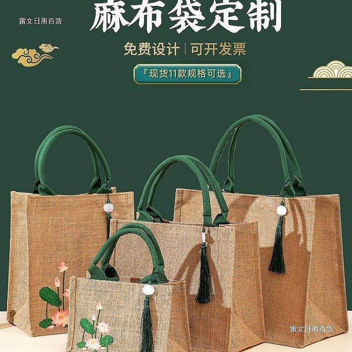 優寶購物《ubao.Tw》特貨品商城,黑貓宅配,取貨付款,麻布手提袋定 制國潮風亞麻購物飯盒包帆布棉麻袋子黃麻禮品袋 | Yahoo拍賣
