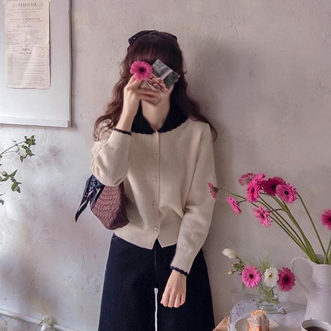 優寶購物《ubao.Tw》特貨品商城,黑貓宅配,取貨付款,快閃優惠價699元 Bellee 正韓 舒適柔軟 可愛拼色波浪領長袖針織上衣 (2色)【1020-28】 | Yahoo拍賣