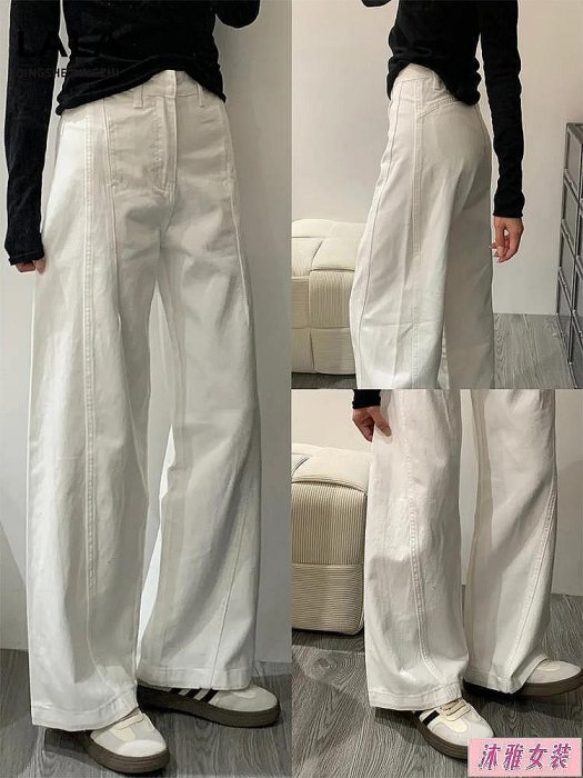 優寶購物《ubao.Tw》特貨品商城,黑貓宅配,取貨付款,限時白色高腰彎刀闊腿牛仔褲女2025夏季新款寬松顯瘦垂感鐮刀直筒褲子 | Yahoo拍賣