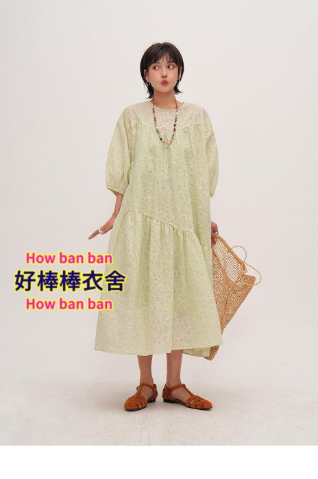 優寶購物《ubao.Tw》特貨品商城,黑貓宅配,取貨付款,好棒棒衣舍_春夏法式緹花鹽縮棉寬鬆氣質連身裙_輕熟典雅簡約 | Yahoo拍賣