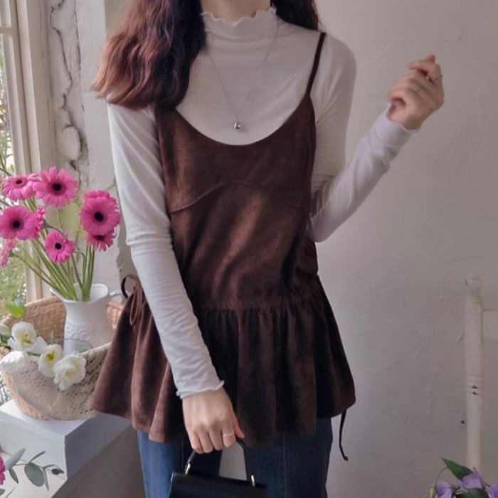 優寶購物《ubao.Tw》特貨品商城,黑貓宅配,取貨付款,Bellee 正韓 可愛絨面側邊綁帶波浪細肩背心上衣 【1022-12】 | Yahoo拍賣