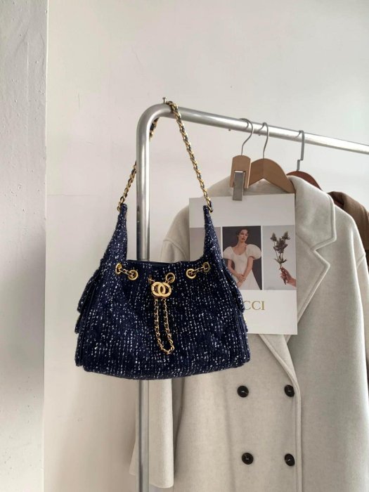 優寶購物《ubao.Tw》特貨品商城,黑貓宅配,取貨付款,小香風菱格毛呢粗花呢25bag手提包鏈條抽繩水桶包流浪包3色 | Yahoo拍賣