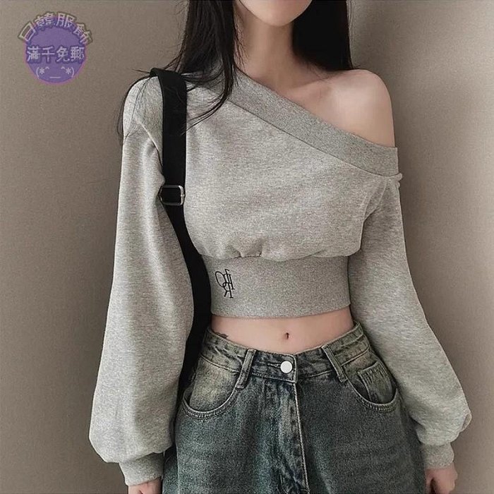 優寶購物《ubao.Tw》特貨品商城,黑貓宅配,取貨付款,日韓服飾=辣妹甜颯風斜領露肩衛衣女秋季2025新款寬松小個子短款露臍上衣潮=休閒T恤襯衫POLO衫女生上衣 | Yahoo拍賣