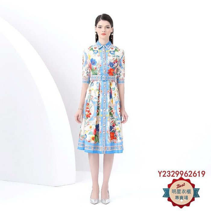 優寶購物《ubao.Tw》特貨品商城,黑貓宅配,取貨付款,明星衣櫃=2025清倉撿漏~宮廷風翻領短袖束腰闊裙擺印花長款洋裝連身裙 | Yahoo拍賣