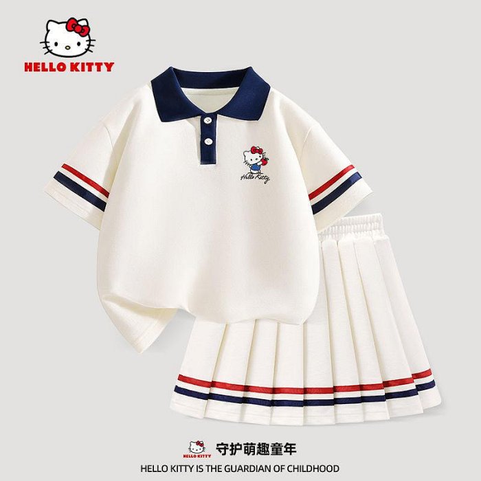 優寶購物《ubao.Tw》特貨品商城,黑貓宅配,取貨付款,HELLO KITTY凱蒂貓女童polo衫套裝2025夏季新款撞色兒童運動衣服 XEXV | Yahoo拍賣