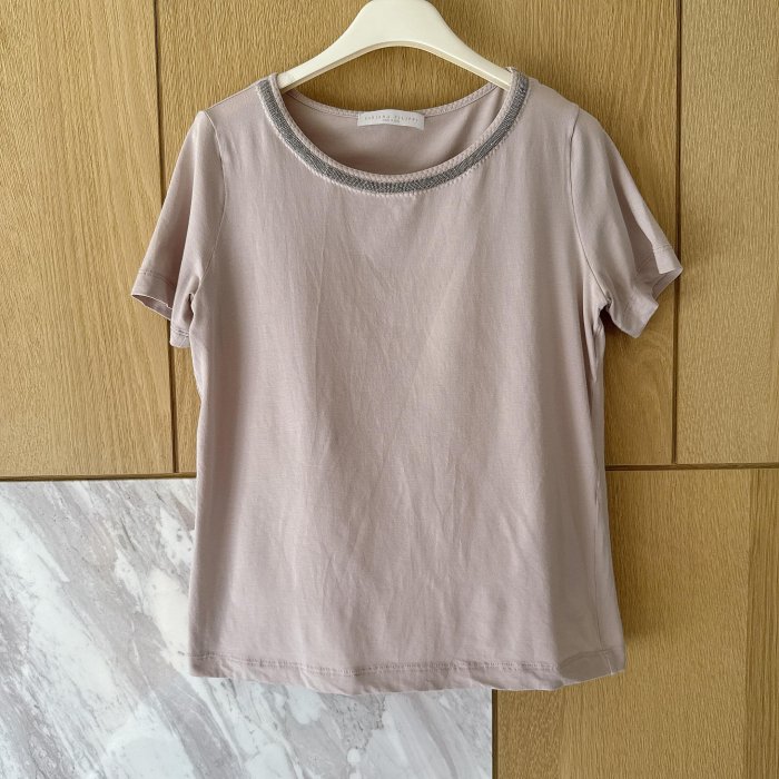 優寶購物《ubao.Tw》特貨品商城,黑貓宅配,取貨付款,💎 低調奢華 Fabiana Filippi 珠飾領口淡藕色短袖上衣 | Yahoo拍賣