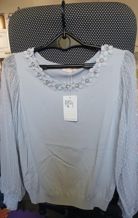 優寶購物《ubao.Tw》特貨品商城,黑貓宅配,取貨付款,0918 全新 灰藍針織 蕾絲長袖衣 | Yahoo拍賣