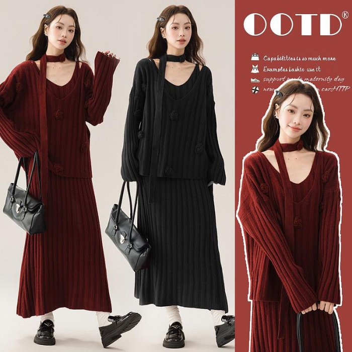 優寶購物《ubao.Tw》特貨品商城,黑貓宅配,取貨付款,現貨 秋冬新款立體花朵針織外套中長款吊帶連衣裙孕婦兩件套裝 | Yahoo拍賣