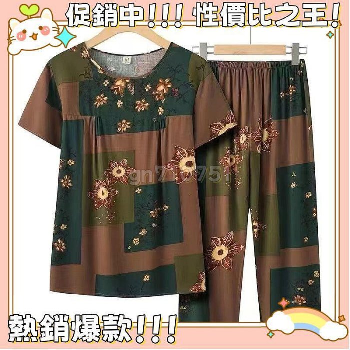 優寶購物《ubao.Tw》特貨品商城,黑貓宅配,取貨付款,?台灣熱銷中?媽媽裝夏季休閒冰絲套裝寬鬆大尺碼奶奶短袖上衣寬鬆中老年人兩件套夏天睡衣大尺碼睡衣套裝女生服女生睡衣女睡衣 | Yahoo拍賣