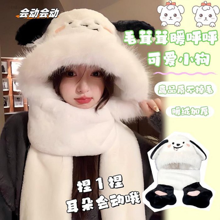 優寶購物《ubao.Tw》特貨品商城,黑貓宅配,取貨付款,【今日特選~】小狗耳朵會動哦~可愛圍巾帽子冬天毛茸茸加厚防風保暖手套三件套 | Yahoo拍賣