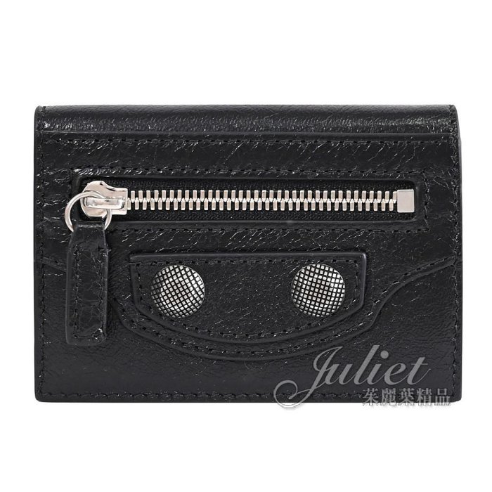 優寶購物《ubao.Tw》特貨品商城,黑貓宅配,取貨付款,【茱麗葉精品】全新商品 BALENCIAGA 巴黎世家 專櫃商品 768430 經典羊皮鉚釘三折小短夾.黑 現貨 | Yahoo拍賣