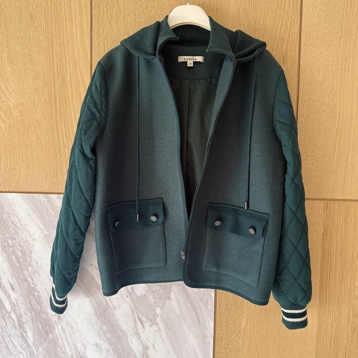 優寶購物《ubao.Tw》特貨品商城,黑貓宅配,取貨付款,🌲La Feta 連帽拼接菱格袖短外套 | Yahoo拍賣