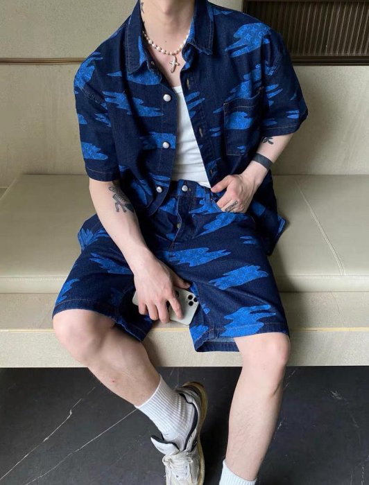 優寶購物《ubao.Tw》特貨品商城,黑貓宅配,取貨付款,翡翠王.一元起標 LOUIS VUITTON LV 深藍色印花牛仔短袖襯衣五分褲套裝 48碼 最後一套 假貨包退.標多少賣多少 | Yahoo拍賣