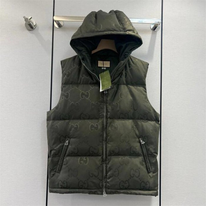 優寶購物《ubao.Tw》特貨品商城,黑貓宅配,取貨付款,翡翠王.一元起標 全新 GUCCI 男女同款 墨綠色印花連帽羽絨馬甲背心. 保真假貨包退 | Yahoo拍賣