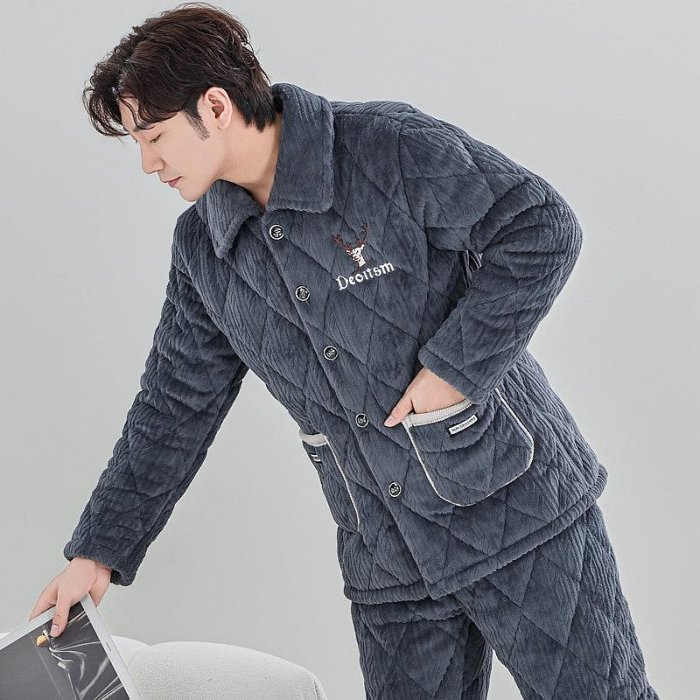 優寶購物《ubao.Tw》特貨品商城,黑貓宅配,取貨付款,2024新款冬季男士睡衣冬款加厚加絨珊瑚絨三層夾棉襖秋冬天家居服 | Yahoo拍賣