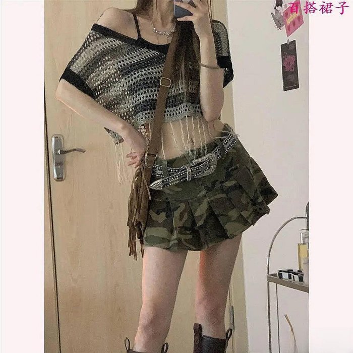 優寶購物《ubao.Tw》特貨品商城,黑貓宅配,取貨付款,百搭裙子學院風✨夏季新款大碼辣妹迷彩百褶裙女低腰a字顯瘦半身短裙子胖妹妹女裝 | Yahoo拍賣