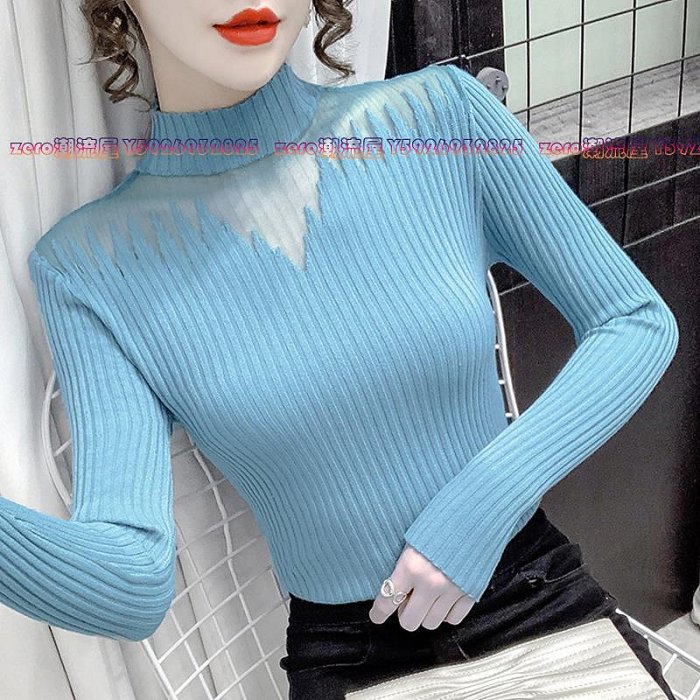 優寶購物《ubao.Tw》特貨品商城,黑貓宅配,取貨付款,洋氣網紗拼接鏤空長袖針織毛衣女秋季2023新款修身半高領打底上衣-zero潮流屋 | Yahoo拍賣